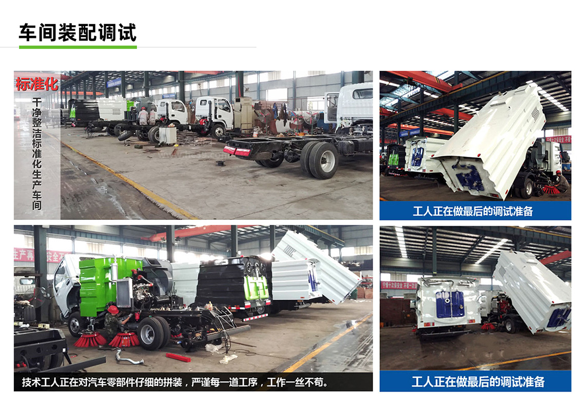 帶掃盤4把,江鈴副發動機;大力馬達;施耐德控件開關;臺灣電磁閥組;免維護自分離式離合器;免維護風機;不銹鋼水箱;不銹鋼垃圾箱;尾部LED箭頭燈;手動泵應急系統;刷臂轉動機構使用高新耐磨工程隔套,免打黃油;精密冷彎無縫液壓油管。