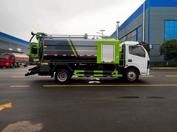 吸污部分:7方污罐,罐體6mmQ235優(yōu)質(zhì)碳鋼,配淄博SK-12水循環(huán)泵,8米吸污管一根,進(jìn)氣管加過濾網(wǎng),防溢閥加高,后蓋卡扣鎖緊,前視污亮管,后尾部加裝1個力拓牌100mm的球閥吸污口150mm排污口,罐體帶舉升功能,后門帶液壓開啟。