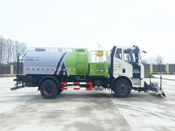 解放J6高壓清洗車(chē)是一種雙發(fā)動(dòng)機(jī)、雙水泵清洗車(chē),是在標(biāo)準(zhǔn)二類(lèi)底盤(pán)的基礎(chǔ)上,加裝高壓沖洗系統(tǒng)、低壓沖洗系統(tǒng),由機(jī)械、液壓(氣路)、電器三部分合為一體的專(zhuān)用沖洗作業(yè)車(chē)。本車(chē)具有獨(dú)立的高、低壓兩套水路系統(tǒng),為清洗車(chē)工作提供壓力水源。其工作原理是:利用高壓水泵產(chǎn)生的高壓水,經(jīng)噴水架的高壓噴嘴噴出,利用高壓水流的動(dòng)能,以高壓力、低流量的方式進(jìn)行清洗,強(qiáng)力去污,高效節(jié)水,能將路面的陳舊污漬清洗干凈;或高壓水經(jīng)左(右)角噴噴出,清洗路緣、人行道及護(hù)欄隔離區(qū);使用高壓噴槍還可清洗路標(biāo)、廣告牌、高架路等;噴霧系統(tǒng)具有強(qiáng)大的噴霧降塵、噴撒空氣消毒劑及調(diào)節(jié)空氣濕度功能。
