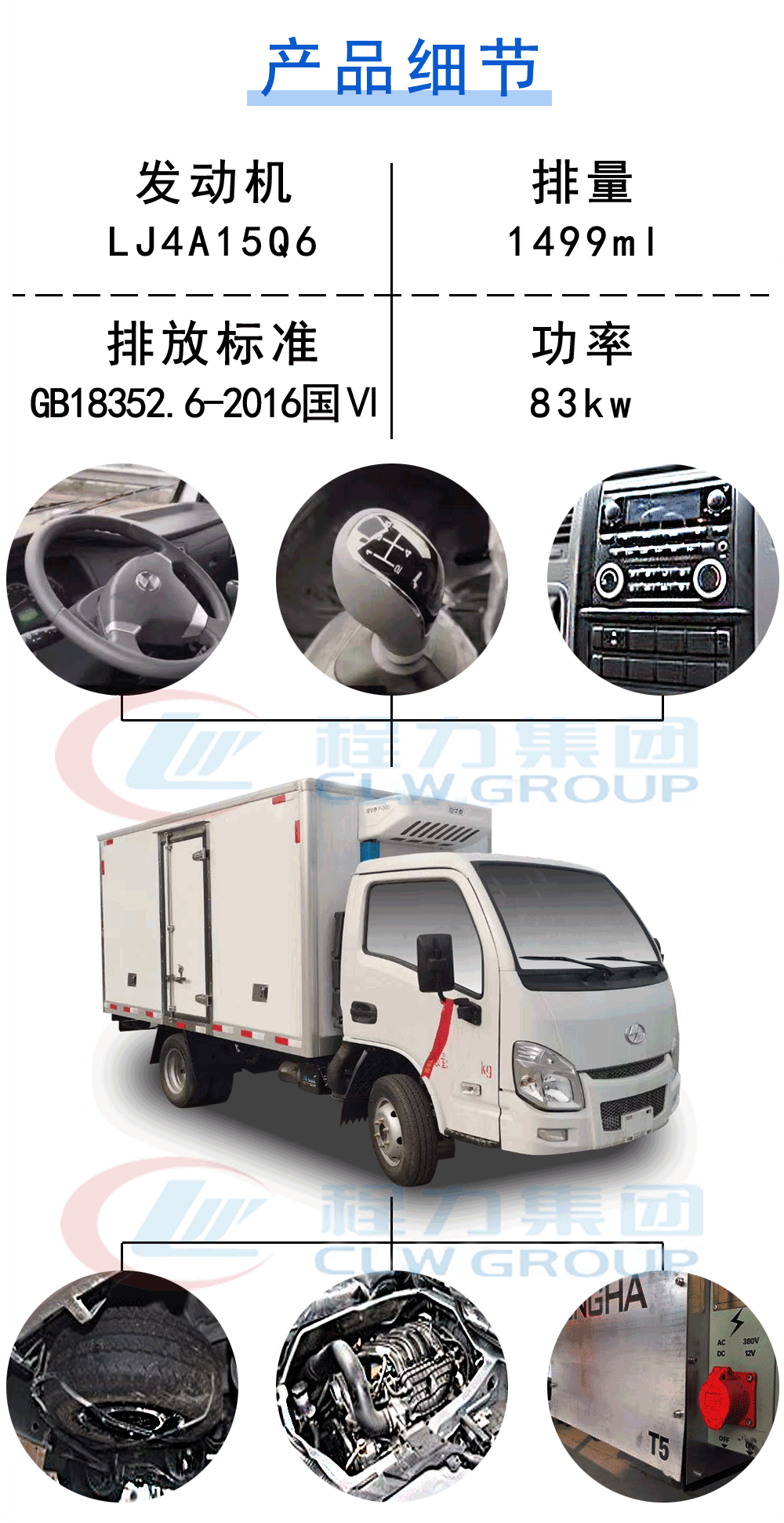 | 其他 | 1.ABS控制器型號/生產(chǎn)廠家:YF8/武漢元豐汽車電控系統(tǒng)有限公司;2.LJ4A15Q6凈功率為79kw,對應(yīng)油耗值為9.6L/100km;3.車廂頂部封閉不可開啟;4.車廂可選裝不開門或側(cè)開門,可選裝左或右側(cè)開門,不同外觀側(cè)門和后門;5.可選裝導(dǎo)流罩;6.選裝其他廠家功率相當(dāng)?shù)闹评錂C(jī)組,KV300英格索蘭(中國)投資有限公司,K125勁達(dá)技術(shù)(河源)有限公司,MK358勁達(dá)技術(shù)(河源)有限公司;7.冷藏車類別:F類;8.隨底盤選裝駕駛室前圍面板,前圍格柵,后視鏡,前部燈具,前保險(xiǎn)杠外觀,擴(kuò)展輪輞外觀,擴(kuò)展輪眉,隨底盤選裝排半駕駛室;9.駕駛室左側(cè)車門選裝裝飾標(biāo)貼. | ||